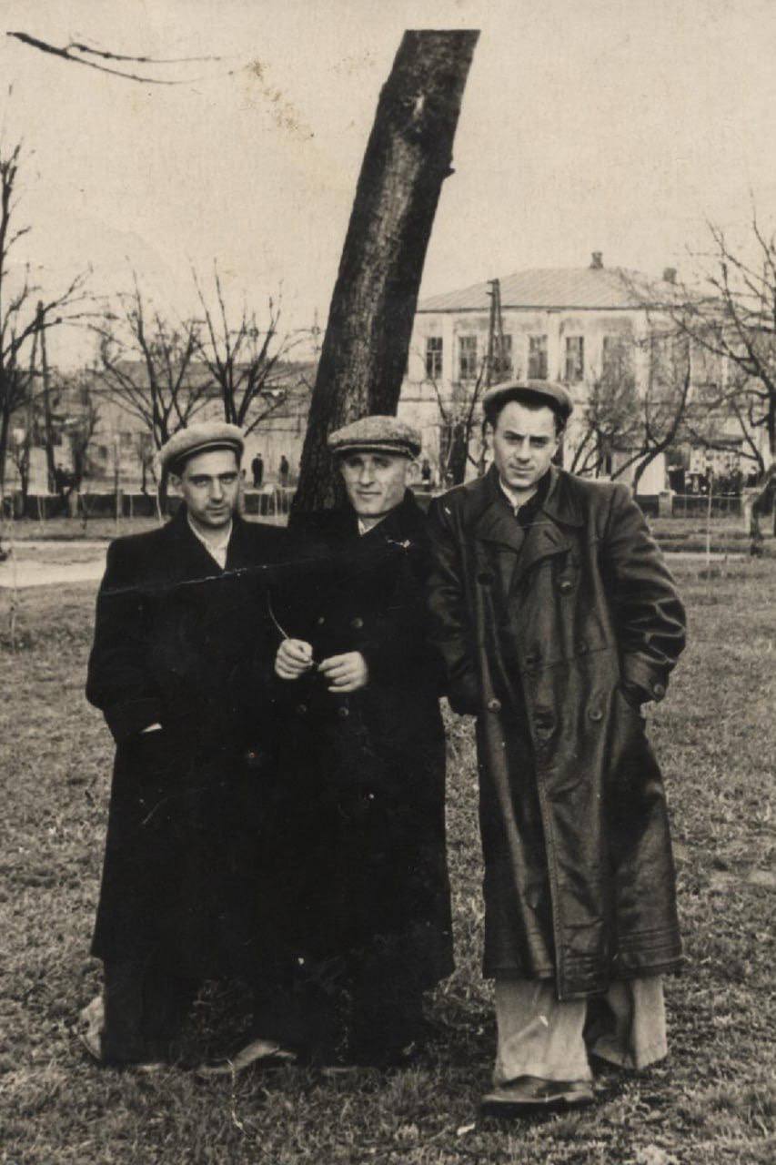 На цій світлині у міському парку зафіксовані троє чоловіків. Крайній справа — Вовк Петро Іванович, посередині — Свердлик Іван Васильович, перший ліворуч— Онопко Борис.