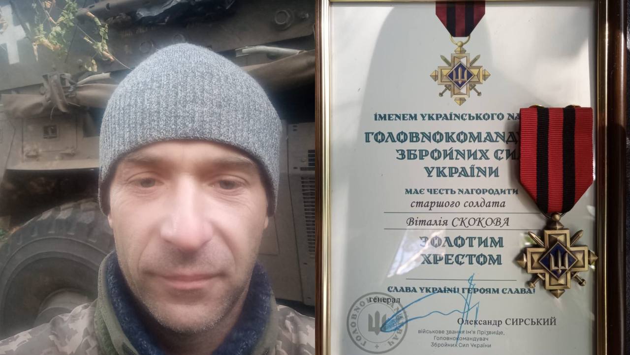 Старший солдат Віталій Скоков, Захисник зі Змієва, нагороджений почесним нагрудним знаком «Золотий хрест» Головнокомандувача Збройних Сил України. Дякуємо та пишаємося!