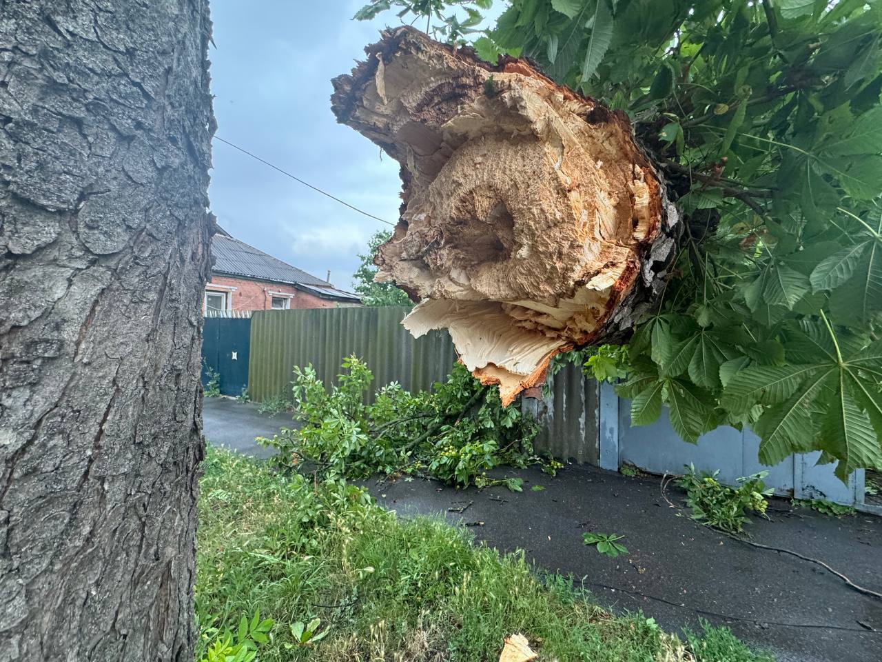 Сьогодні на вулиці Адміністративній Змієва через сильний вітер впало велике дерево — зламано каштан.