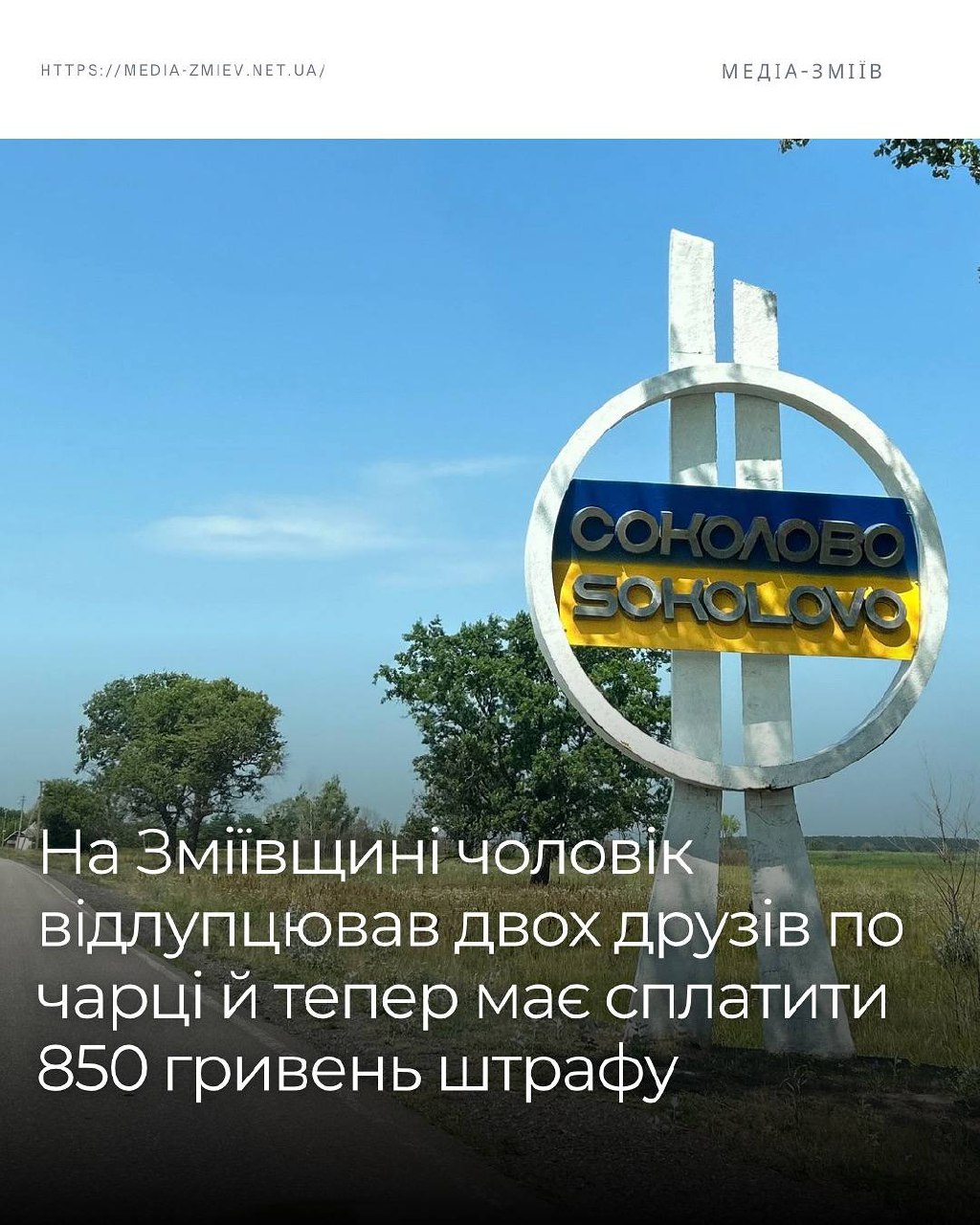На Зміївщині чоловік відлупцював двох друзів по чарці й тепер має сплатити 850 гривень штрафу