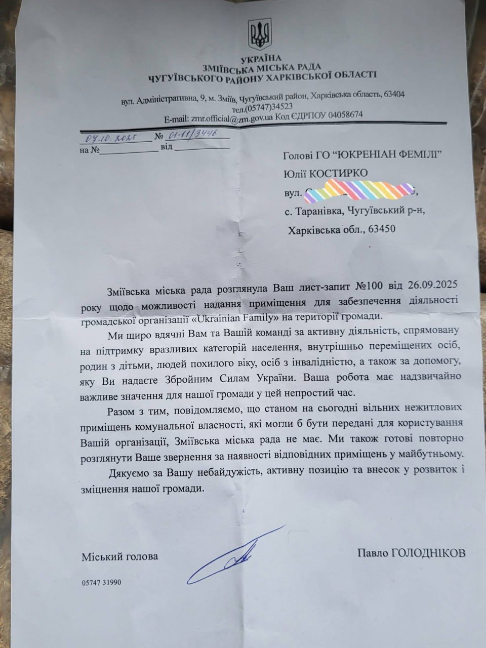 ЗМІЇВСКИЙ ГОЛОВА ГОЛОДНІКОВ ВІДМОВИВ ВОЛОНТЕРАМ З ТАРАНІВКИ У НАДАННІ ПРИМІЩЕННЯ