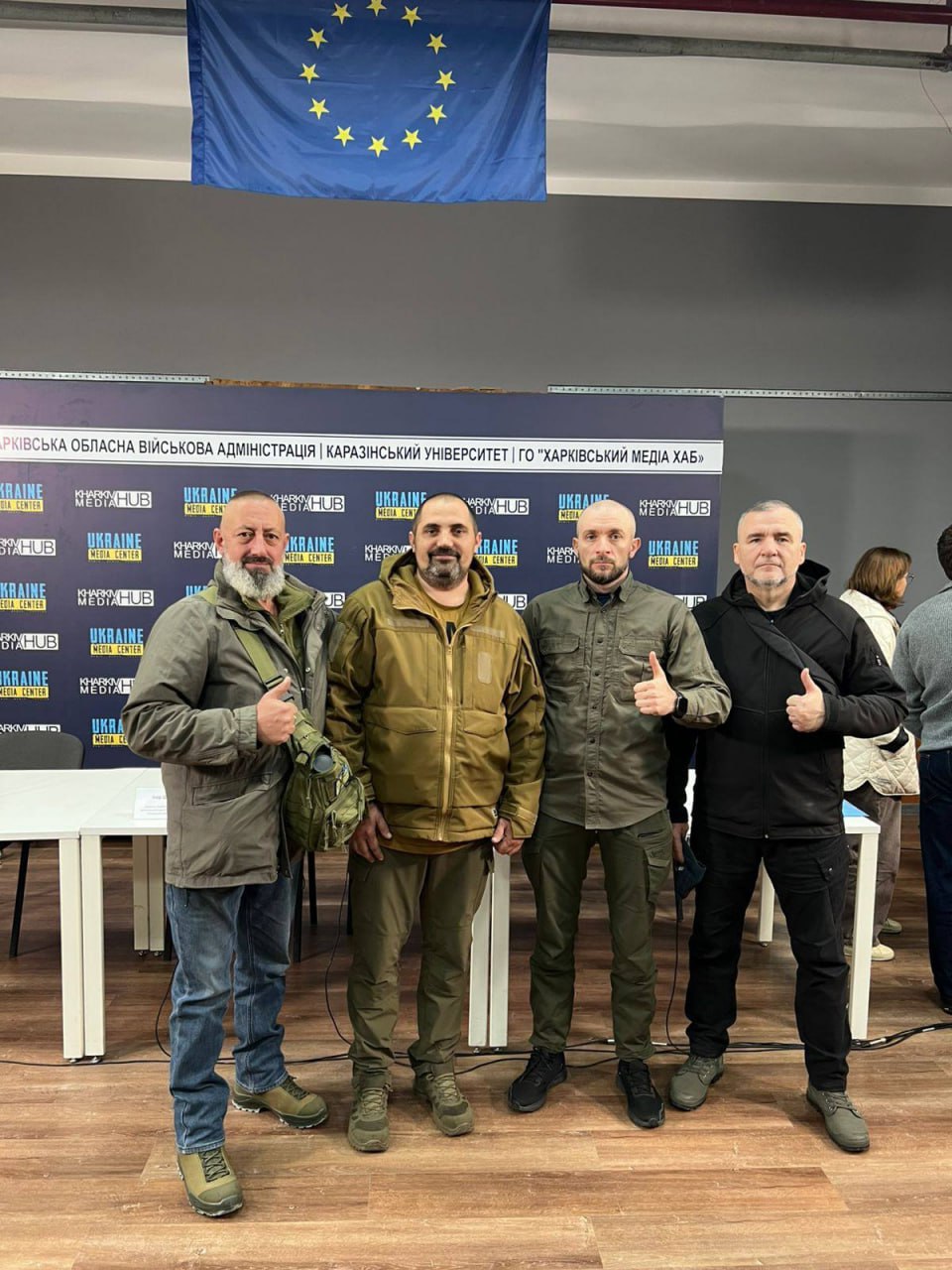 Марина Черняєва (Полякова), голова ГО «Всеукраїнське об’єднання рідних зниклих безвісти та загиблих Захисників України»;Ігор Шишко, директор комунального закладу «Ветеранський простір “Пліч-о-пліч”»;Дмитро Бондаренко, голова Асоціації ветеранських організацій та благодійних фондів.
