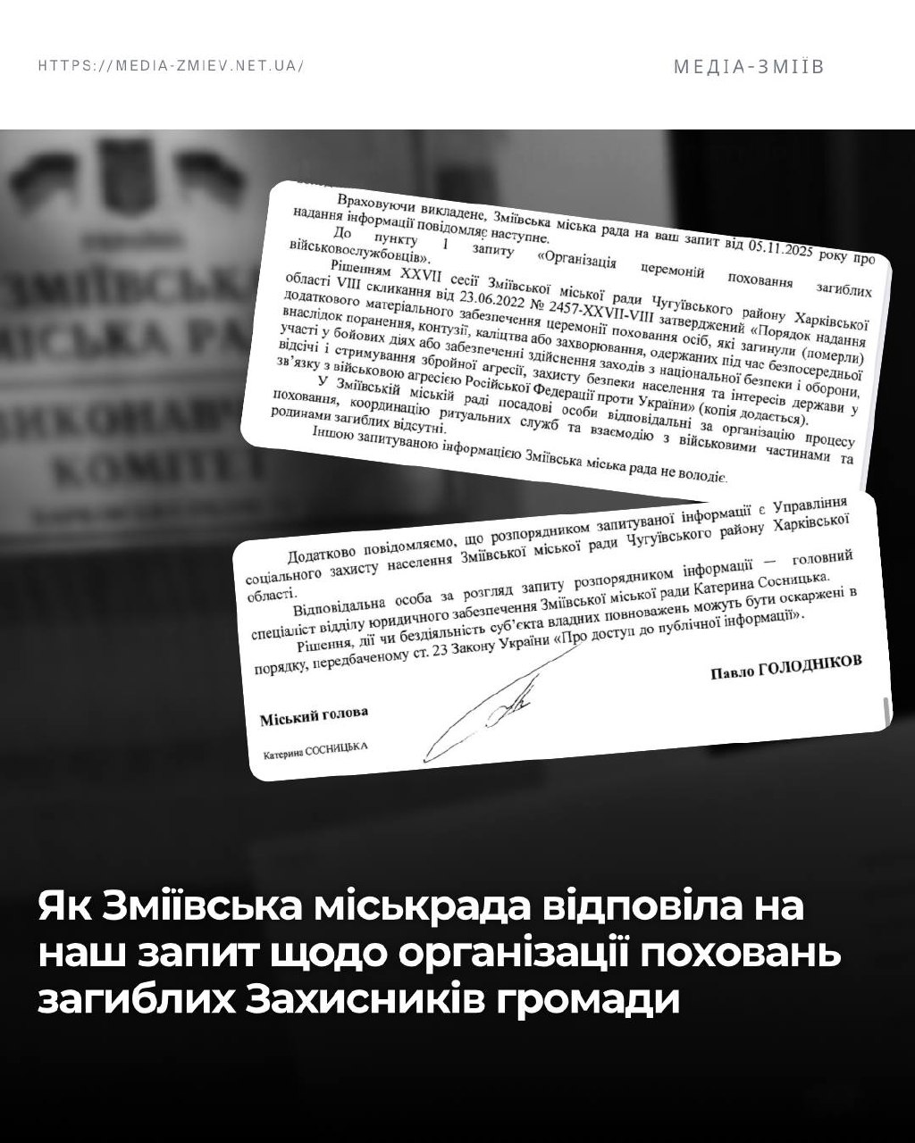 Як Зміївська міськрада відповіла на наш запит щодо організації поховань загиблих Захисників громади