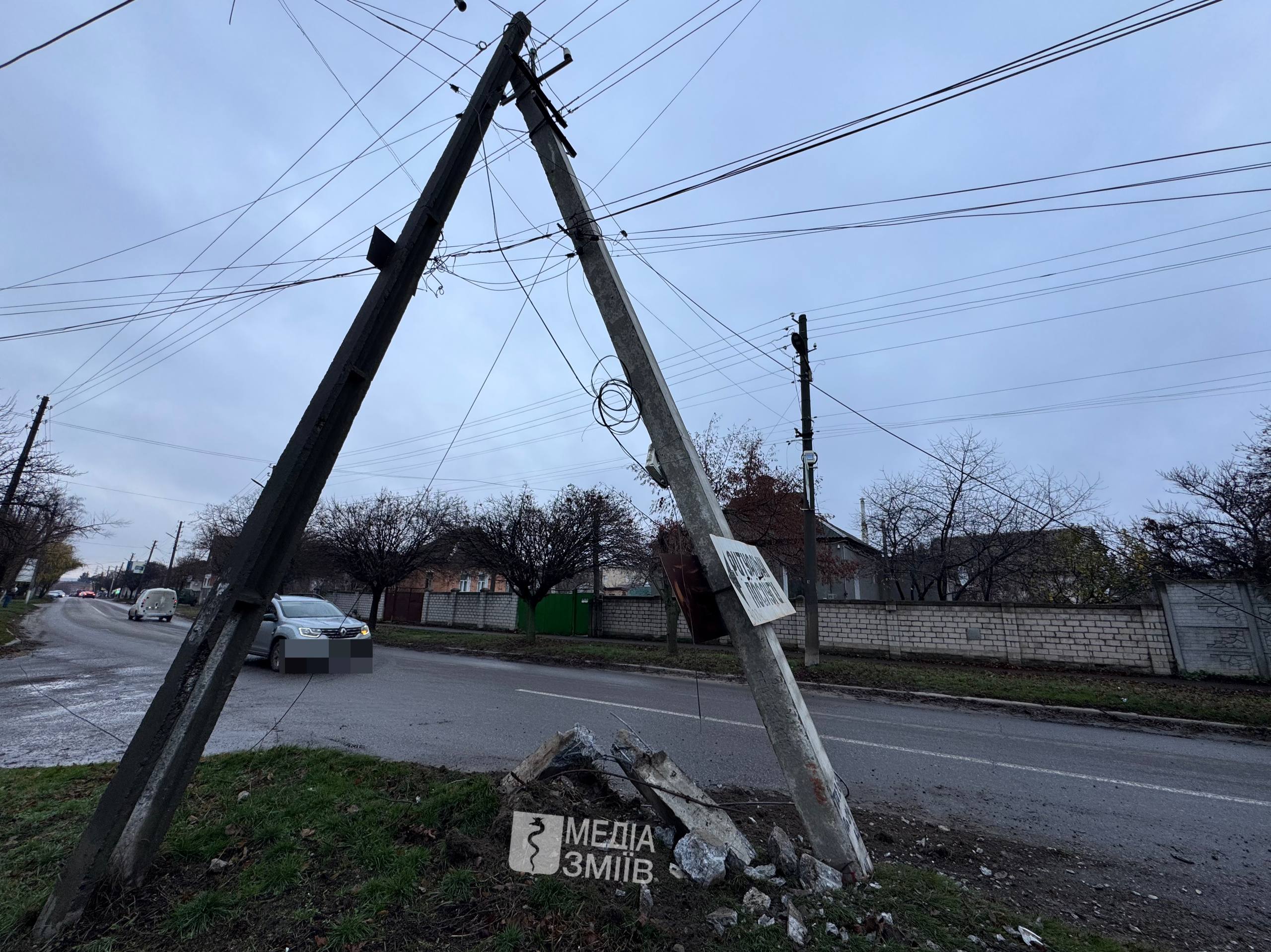 Вранці 20 листопада у місті Зміїв на вулиці Лиманська сталася дорожньо-транспортна пригода. Легковик з невстановлених поки причин влетів у електроопору.