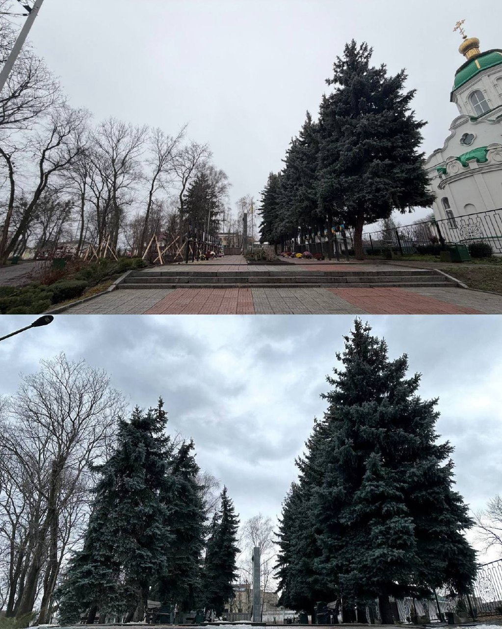 Ще восени парк у центрі Змієва прикрашали величні блакитні ялини. Їм було близько 40 років — це лише початок життєвого циклу цього виду, адже блакитна ялина живе 150–200 років. Улітку спиляли чотири дерева. У листопаді — ще чотири. Загалом — вісім.