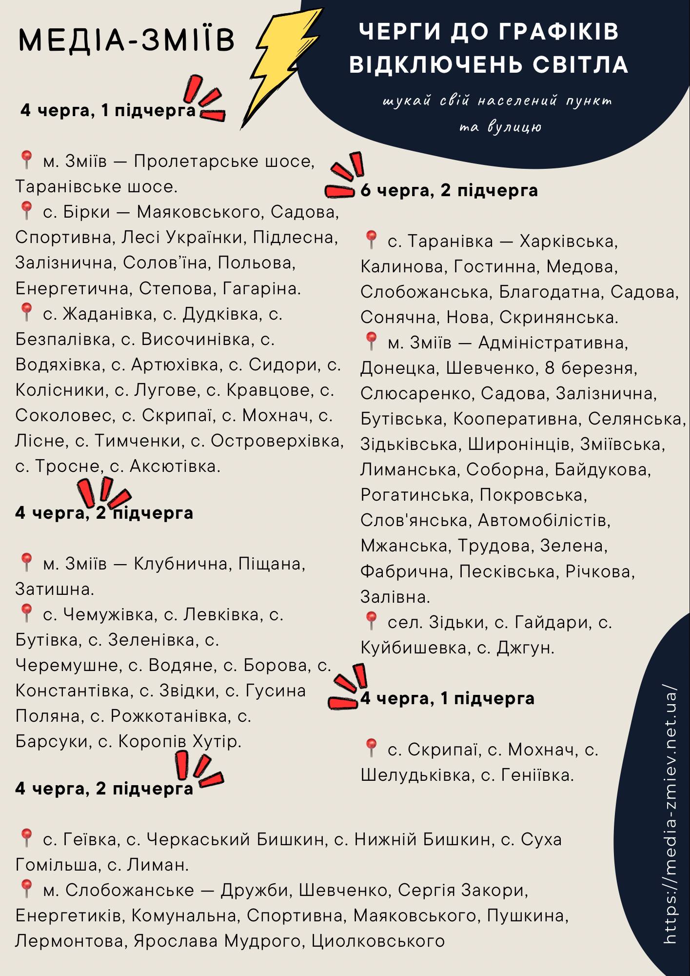 Населені пункти та вулиці — на інфографіці відповідно до черг і підчерг