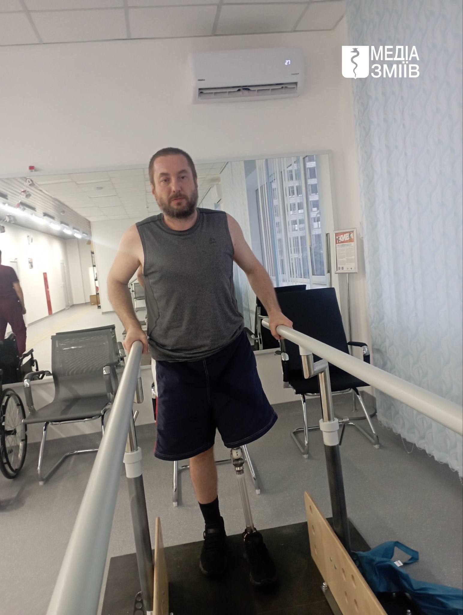 «Я повинен ходити. Я повинен працювати далі»: зміївчанин Віталій Пахомов, який втратив ногу під час ворожої атаки на Зміїв у липні, нині проходить реабілітацію ️