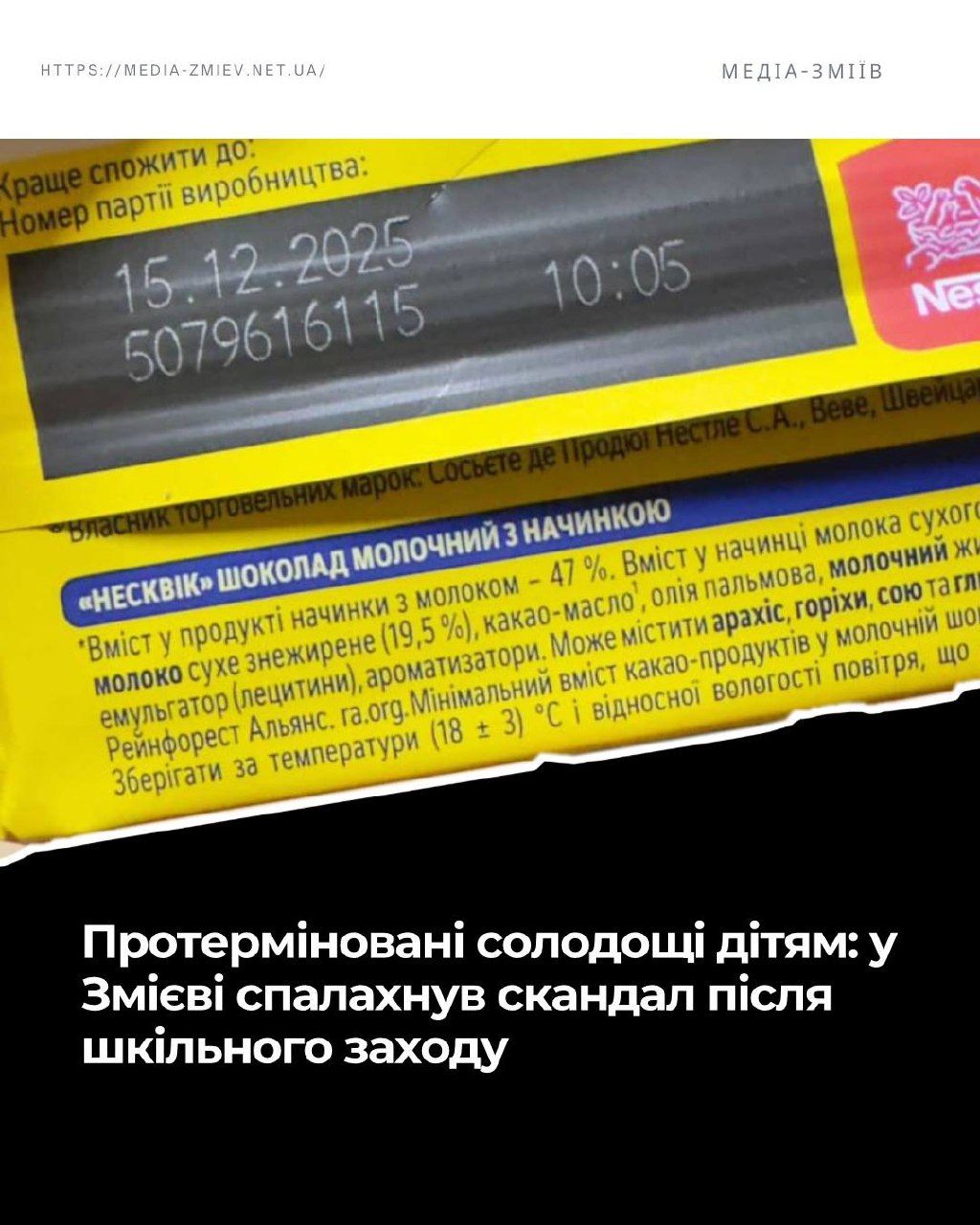 Відповідні фото протермінованих солодощів додавалися. На обгортках, зафіксованих на світлинах, зазначено: «краще спожити до 15 грудня 2025 року», що свідчить про завершення терміну придатності.