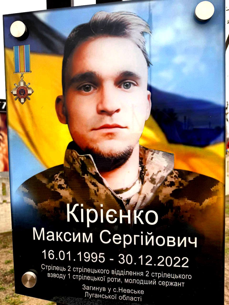 Сьогодні минають треті роковини з дня героїчної загибелі нашого земляка — Максим Кирієнко.
