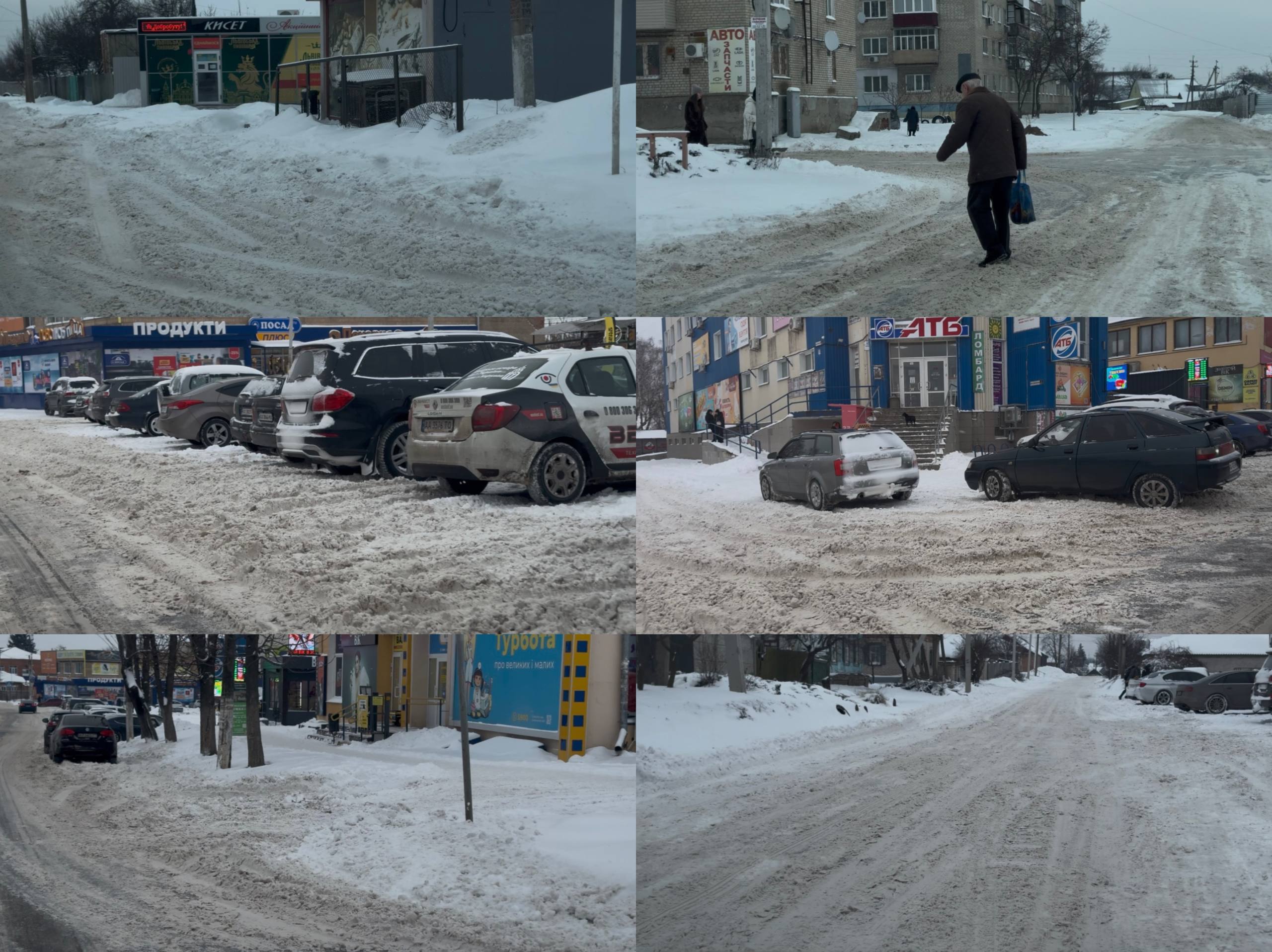 У Змієві після снігопадів залишаються проблемними паркувальні місця та тротуари, зокрема в центрі міста. На поворотах, уздовж доріг і біля будинків сніг не розчищений, що значно ускладнює рух.