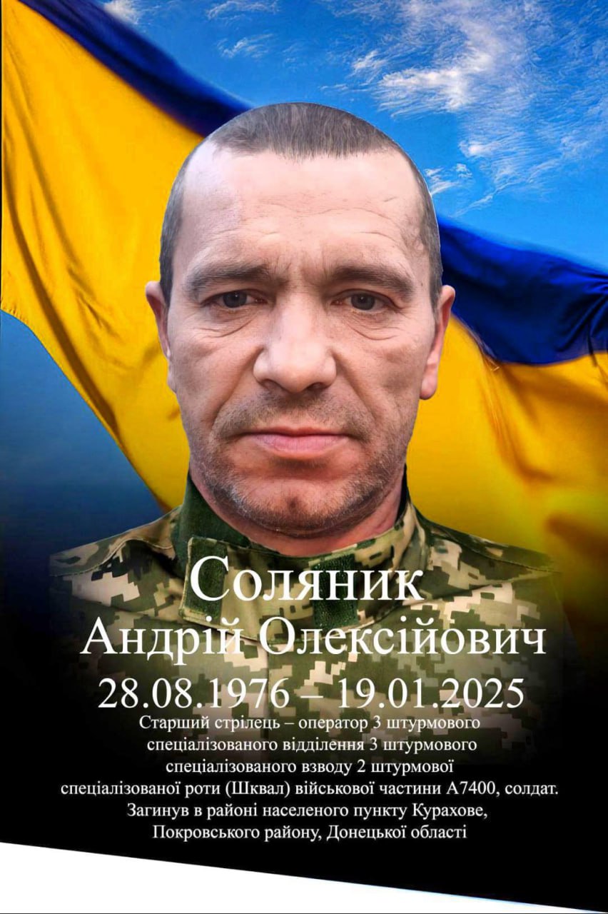 Висловлюємо щирі співчуття дружині, родині, рідним, друзям і побратимам Андрія Соляника.