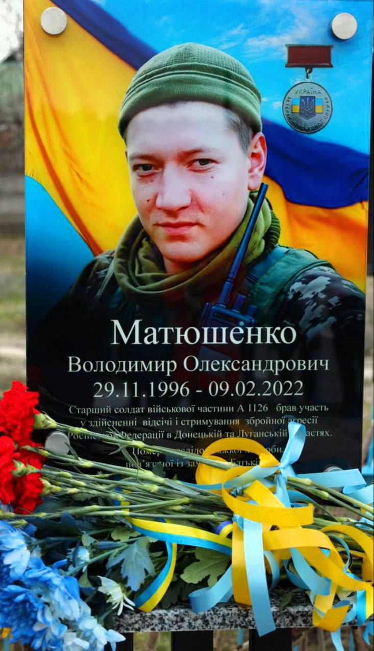 Сьогодні минають четверті роковини з дня, як перестало битися серце Володимира Матюшенко із села Задонецьке. Йому навіки 25. Старший солдат, учасник заходів із відсічі та стримування збройної агресії в Донецькій і Луганській областях, ветеран військової служби, за мужність а самовідданість нагороджений відзнакою Міністерства оборони України.