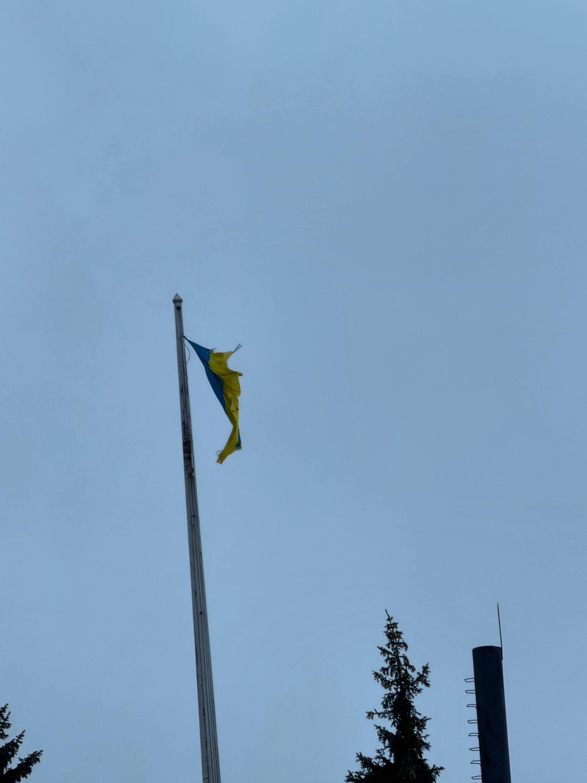 У самому центрі міста на флагштоку відірвався прапор — зараз він тримається фактично на одній мотузці.