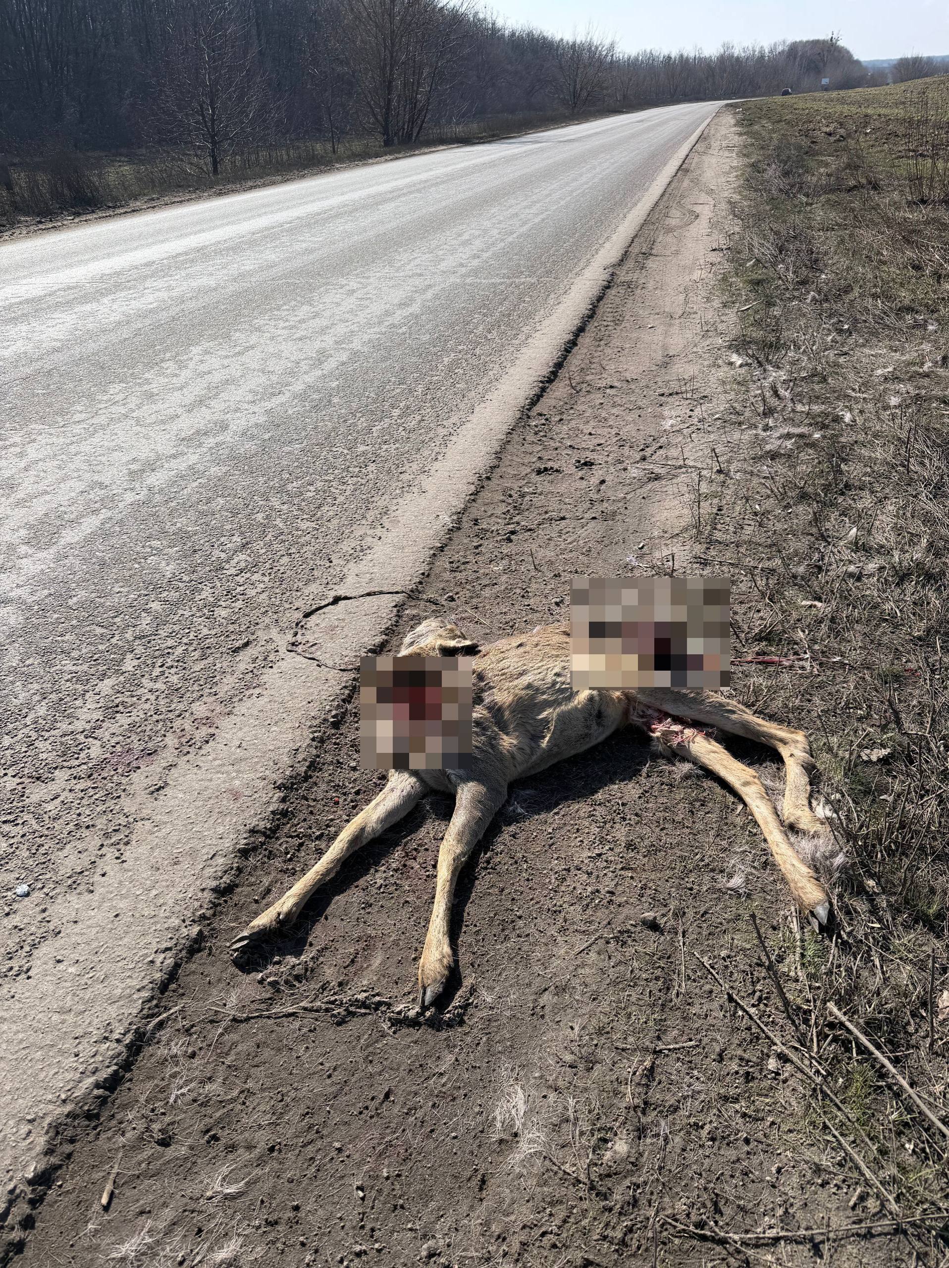 На узбіччі дороги на виїзді зі Змієва у напрямку Задонецького лежить збита молоденька косуля…, — повідомляють підписники