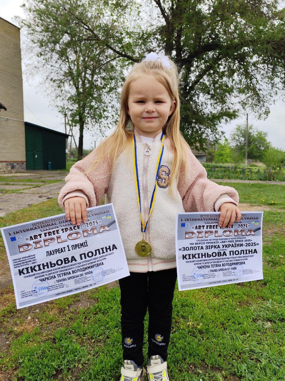 Чудова новина: маленька жителька Зміївської громади з села Таранівка — Полінка — виборола І місце на Міжнародній дистанційній олімпіаді з мистецтв “ART Free Space 2025”!