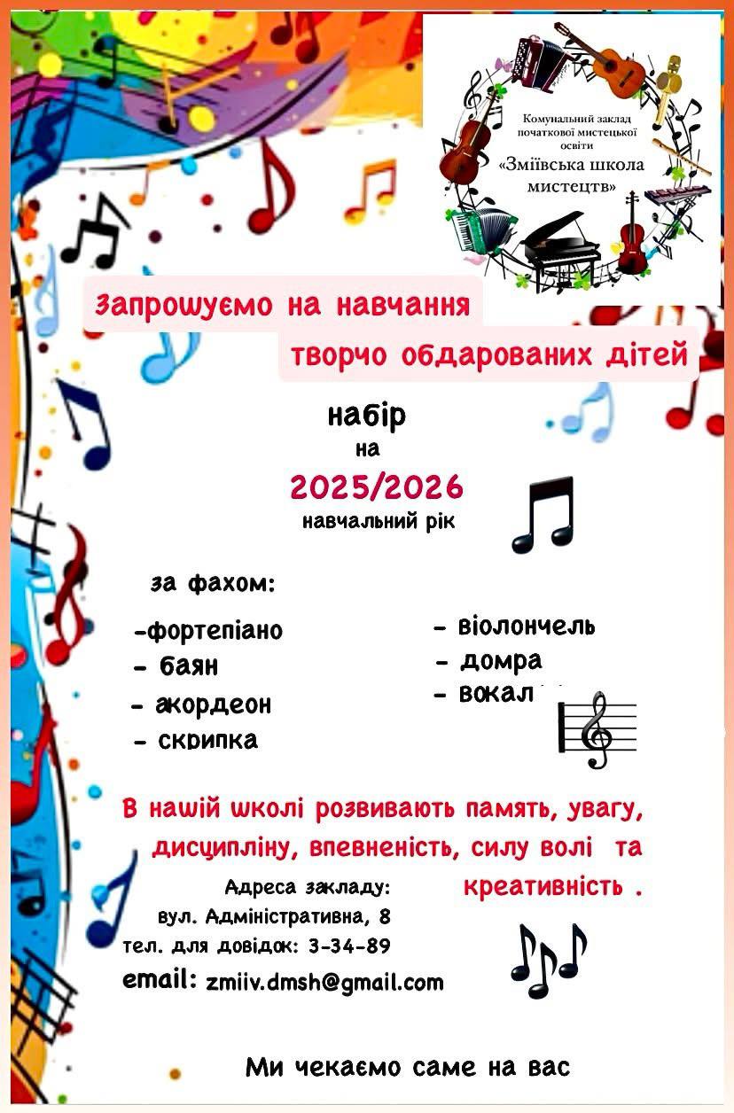 Зміївська школа мистецтв оголошує набір на 2025/2026 навчальний рік
